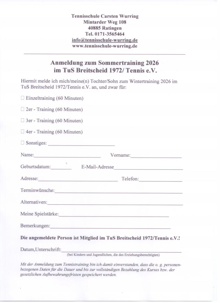 Bei Rückfragen wendet Euch sich bitte an das Büro der Tennisschule unter