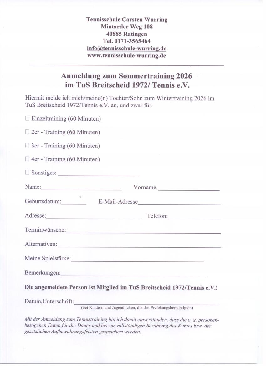 (nur für Mitglieder des TuS Breitscheid 1972/ Tennis e.V.)